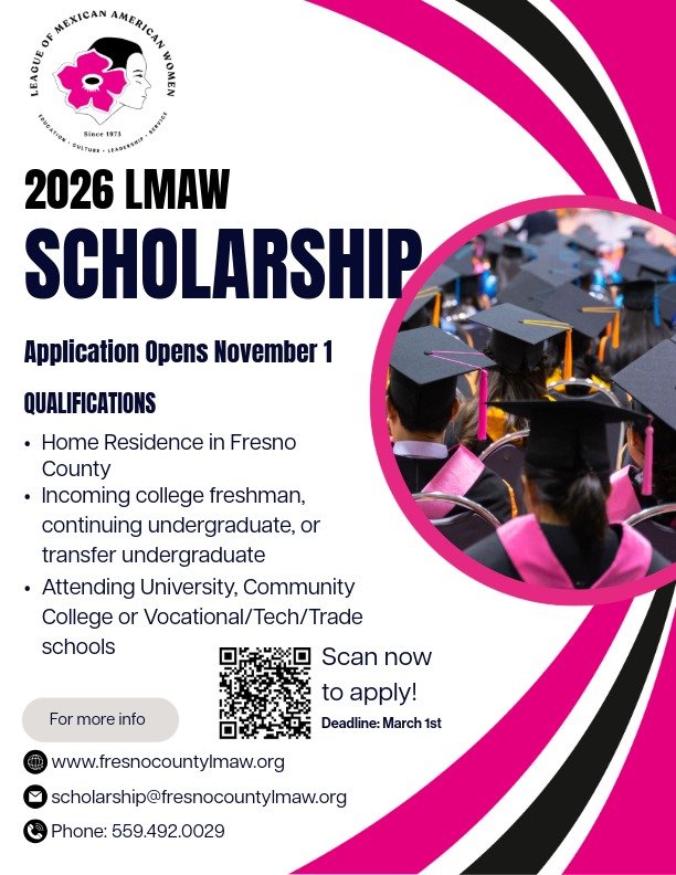 Our scholarships are for Fresno County students and the fund is made possible by the generous support of community donors and proceeds from League events such as the Annual Fiesta Navideña Fashion Show and the Frida Fun Run, the Betty and Armando Rodriguez Scholarship Fund at Central Valley Community Foundation, and other local sponsors. Over the past 50+ years, the League of Mexican American Women has awarded over $668,000 in scholarships.